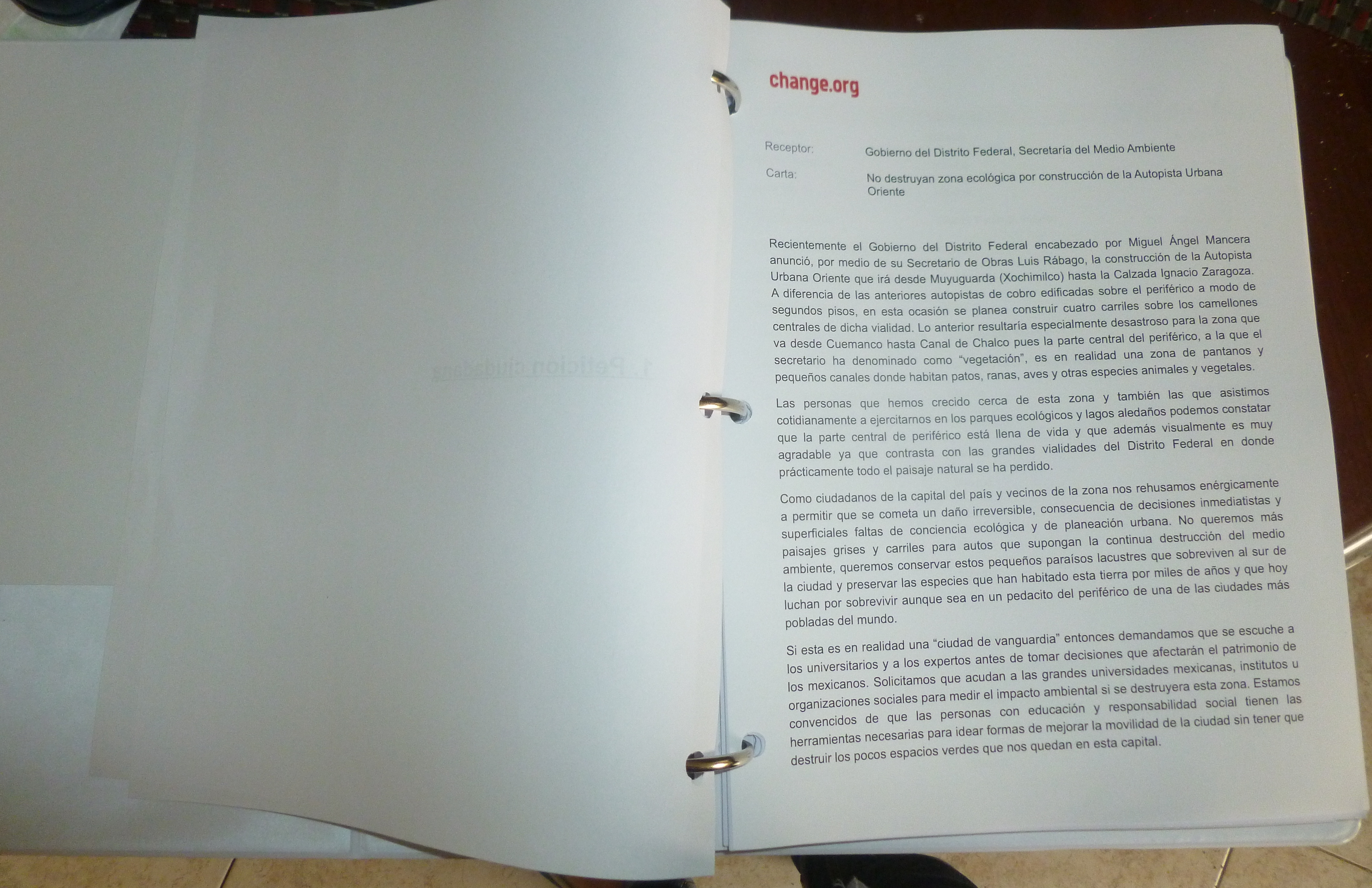 A raíz de los planes del GDF por construir la Autopista Urbana Oriente, investigadores, especialistas y organizaciones expresaron su preocupación por la posible afectación a Xochimilco a través de la siguiente misiva. La carta fue enviada a la titular de la Secretaría del Medio Ambiente del GDF y a todas aquellas autoridades involucradas en la protección del patrimonio de todos los mexicanos: Xochimilco.